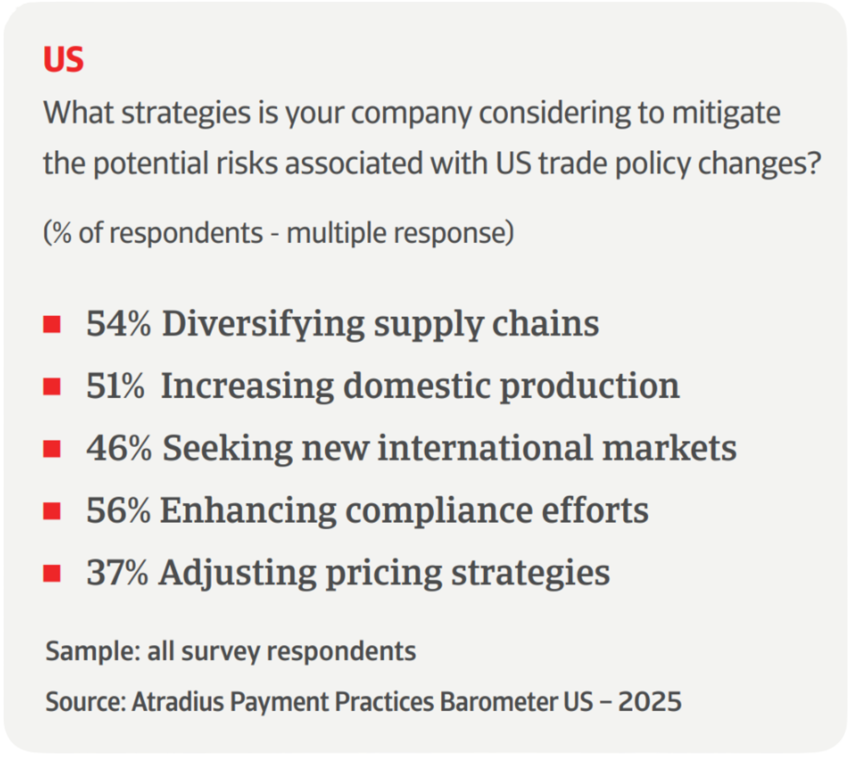 - While the overall outlook is cautiously optimistic, US firms are clearly not standing still and are positioning themselves to remain agile and financially resilient